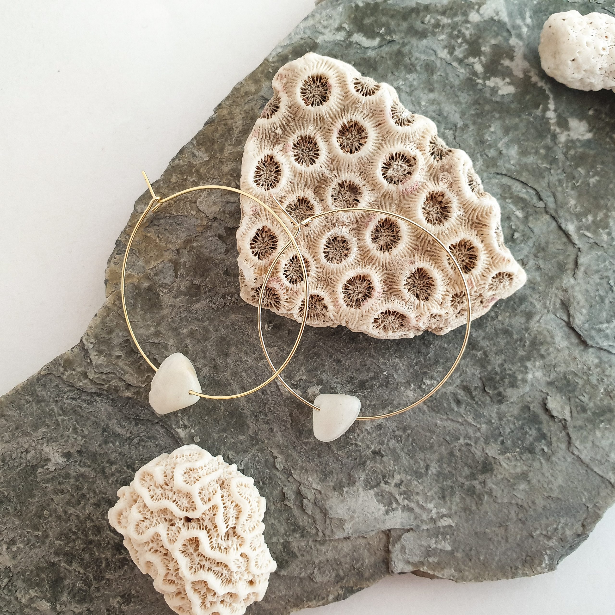 Tous les bijoux GOURNAL sont faits mains en Suisse. Les matériaux utilisés proviennent exclusivement d’Europe et sont choisis minutieusement afin de garantir des créations de qualité. Tous les bijoux sont fabriqués à partir d’argent 925 ou de plaqué or 3 microns afin de garantir une bonne tenue dans le temps. Les coquillages ou pierres qui ornent les bijoux sont 100% naturelles car ils sont ramassés à la main à travers le monde. Puisqu’ils n’existent pas deux coquillages ou pierres parfaitement identiques et que les bijoux sont faits mains, chaque pièce d’un même modèle est légèrement différents des autres. Des bijoux uniques pour des personnes uniques !